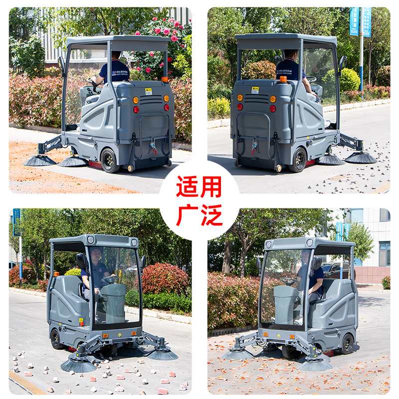 LT-A19型半封闭式扫地车,清扫宽度1500-2100mm,可手动调节伸缩,改变清扫宽度。满电工作时间3-4小时,工作效率:15600㎡/h,采用的是4块80A的大品牌铅酸免维护电池。应用场景:厂区、车间、公园、街道、物业小区、码头、学校、机场等场地。
